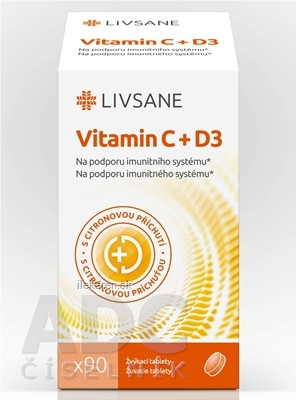Výživový doplnok s vitamínmi C (250 mg) a D3 (20 mcg), so sladidlami a s citrónovou pr..